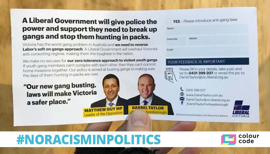BREAKING: This is the horrible rhetoric that's designed to dehumanise African Australians and other migrants. A clear act by the Vic Liberal Party to divide our communities. This goes beyond party politics–we stand against racism no matter where it comes from.