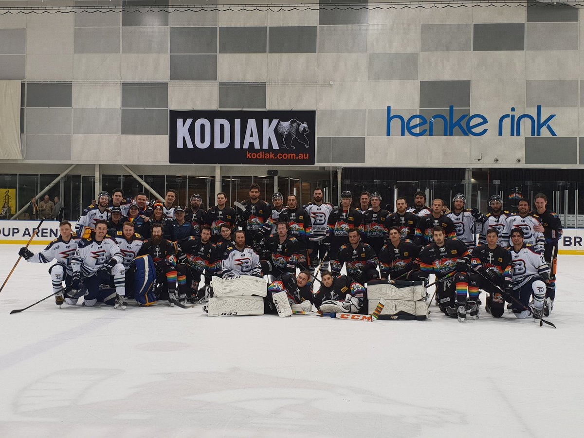 @Mustangs_Hockey and@CBRBrave looking mighty good in their#pridegame finery#PuckHomophobia#BleedOrange#AIHL#AIHLGamedaypic.twitter.com/pSjtYKQ98B