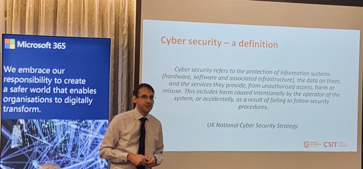 @david_crozier with us here at the@Microsoftirl Security Event in Belfast to give us the@CSIT_QUB perspective on#CyberSecurity.pic.twitter.com/fHZzFy0ENF