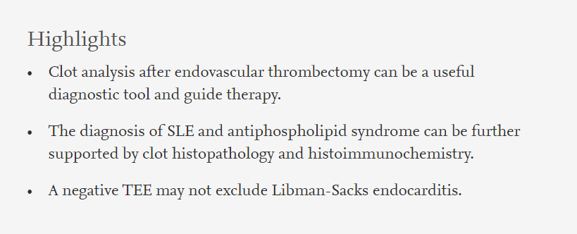 in #APS The diagnostic utility of routine clot analysis after endovascular thrombectomy in a patient with antiphospholipid syndrome https://www.sciencedirect.com/science/article/pii/S0967586819301754 …pic.twitter.com/hk0YF2plpw