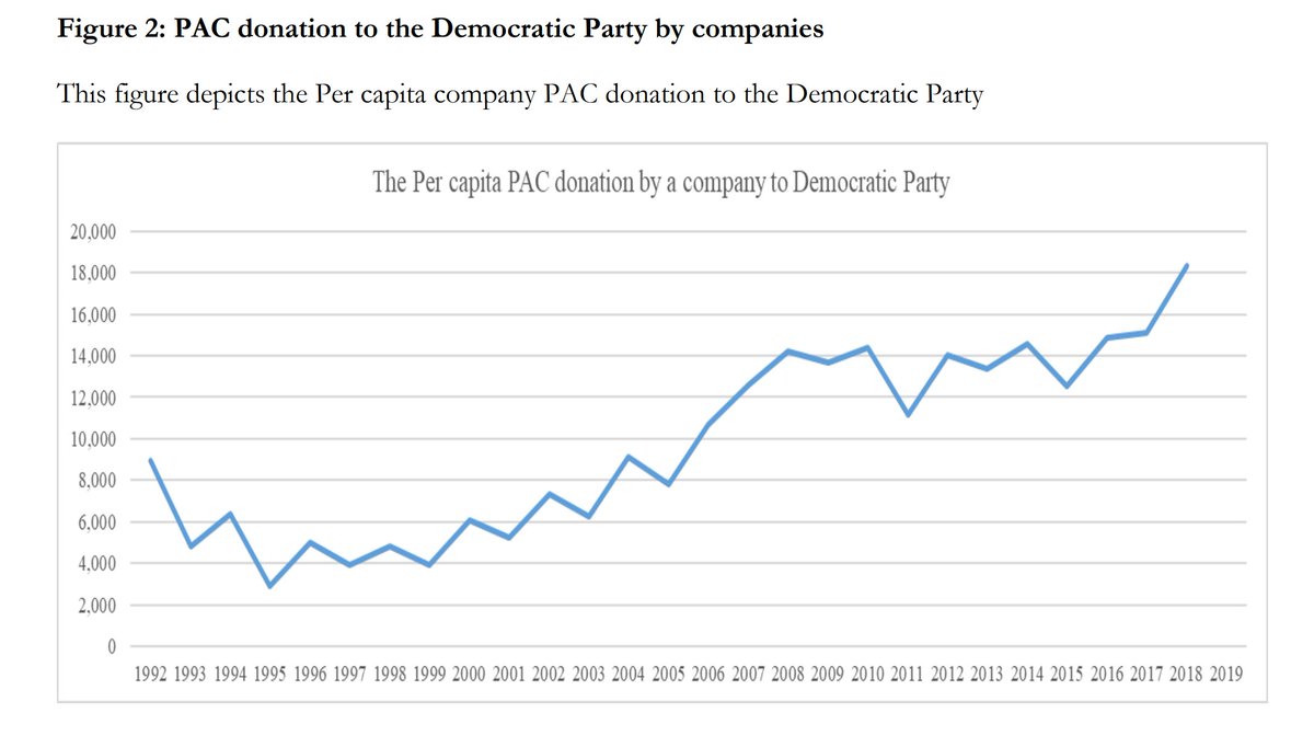 Is Wall Street Turning Blue? (2020) "We demonstrate that since the early 1990’s, it is becoming increasingly common for firms to be run by CEOs who are aligned with the Democratic Party..." "...the trend appears to be quite pervasive, as nearly 75% of industries turned bluer."pic.twitter.com/NodSVkSxBE