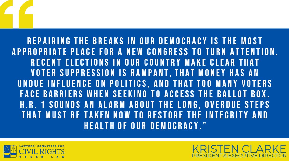 #116thCongress just introduced#HR1, a robust, comprehensive democracy reform package that includes voter empowerment & access reform and addresses money and corruption in politics. Read more: https://bit.ly/2LPOiWg pic.twitter.com/5D7Q2M4qDC