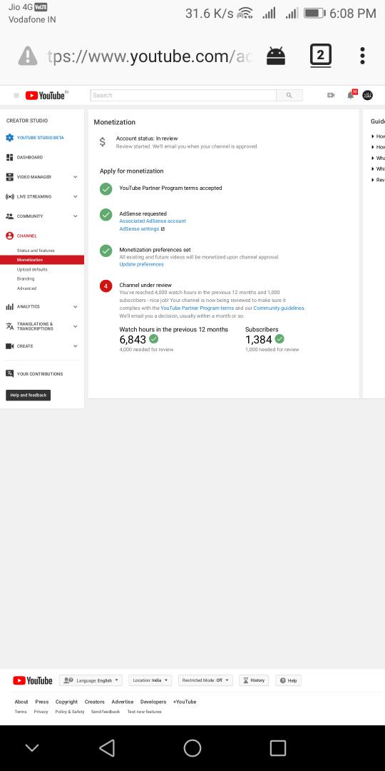 How time my chennel monetization on