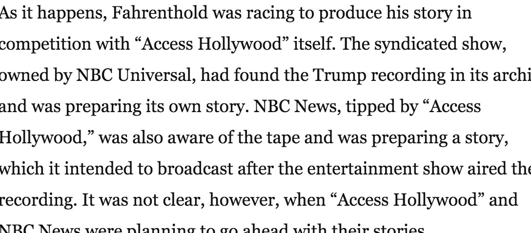 Uh-huh. And what was Access doing? The Post received the tape, vetted it, called for comment and published it in five hours.