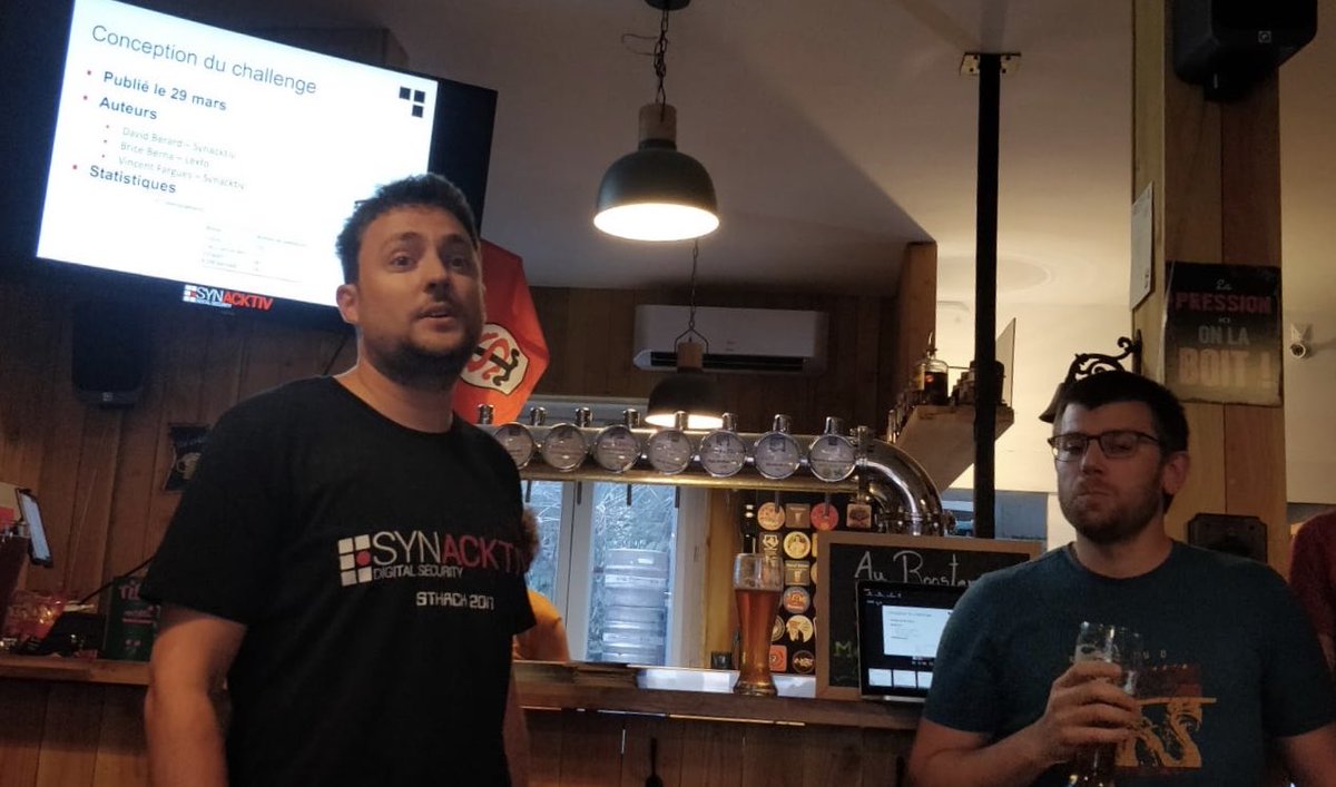 @Karion_ and@_p0ly_ are presenting the SSTIC 2019 challenge at Bière Sécu Toulouse!pic.twitter.com/a4h8jvh9nq