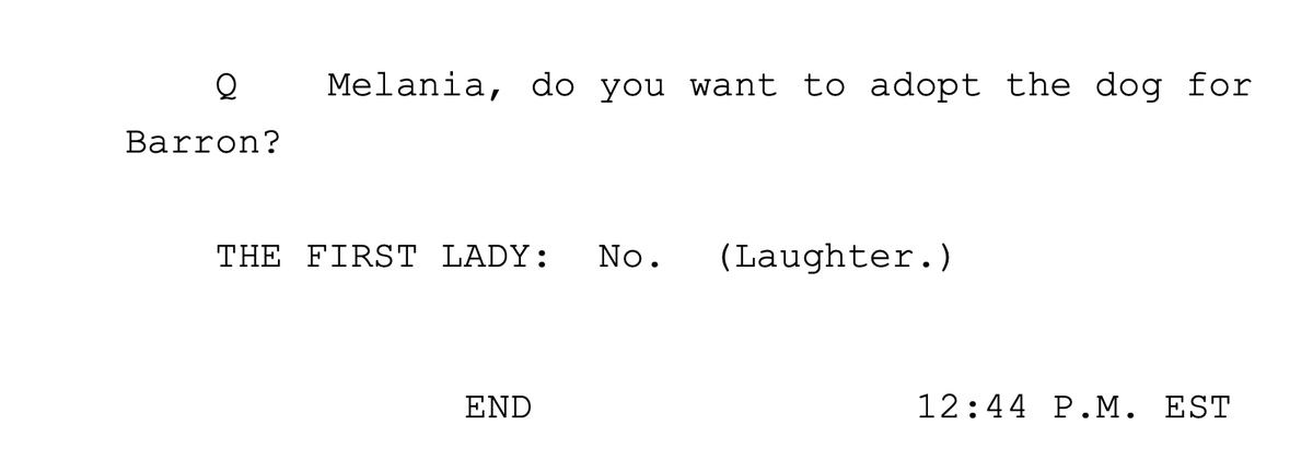 Just noticed a reporter asked Melania if she wanted to adopt Conan for Barron.pic.twitter.com/5SFzNeLHtr