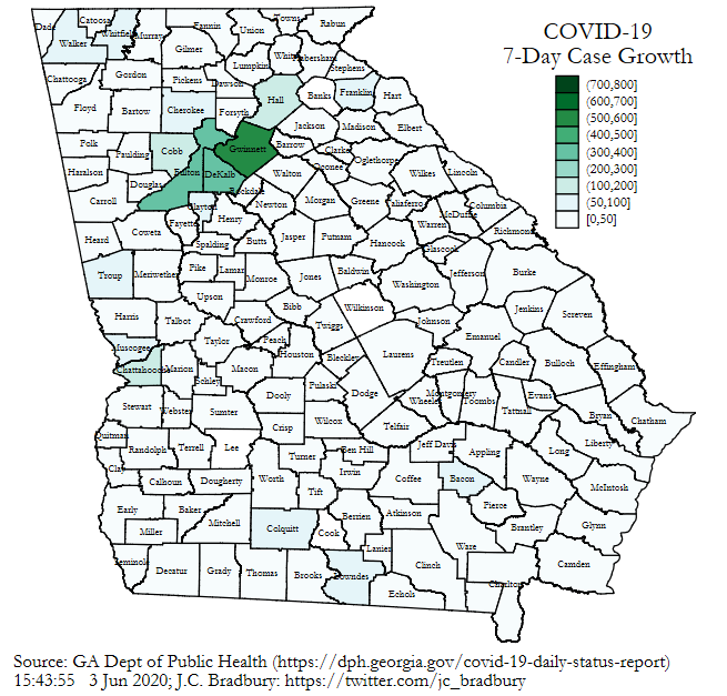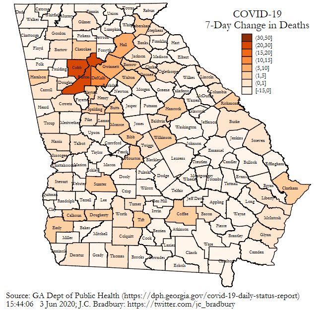 Folks, we've got a problem in Gwinnett County with case growth. Deaths still growing in Cobb and Fulton.pic.twitter.com/MWRuABCBSF
