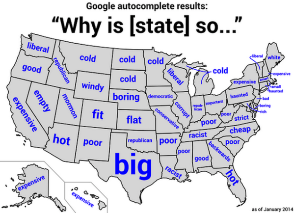 Each state's biggest stereotype, according to Google http://gizmo.do/7J2QMlH pic.twitter.com/Tw5KObj92H