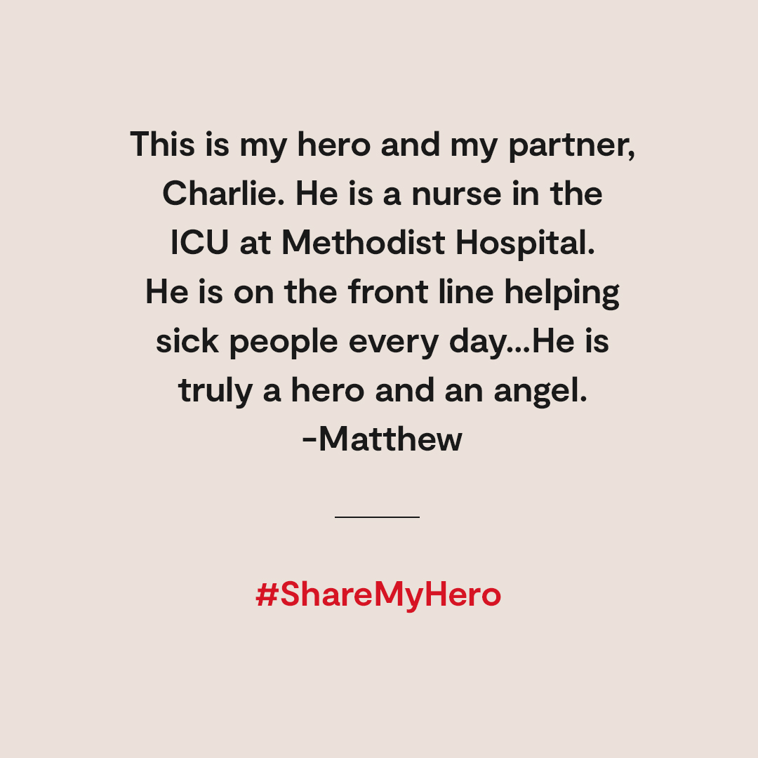 Thank you to Charlie and all the ICU nurses who are making a difference every day. You are all heroes.
