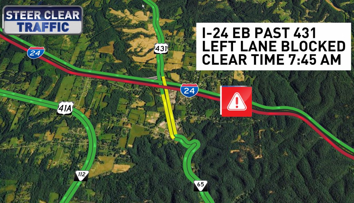 And now this... accident blocking LEFT LANES on I-24 WB @ Sam Ridley in Smyrna.