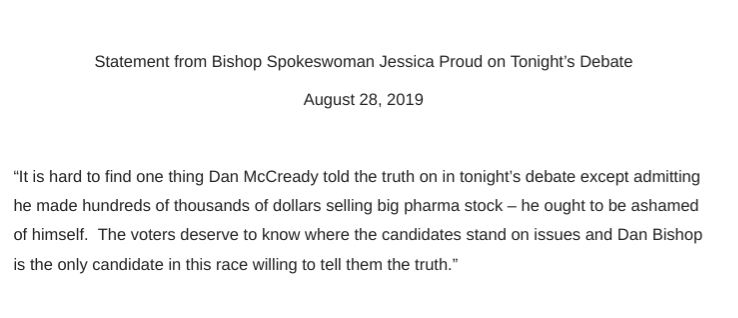 It should read: Statement on tonight's debate. Dan Bishop lost bigly.