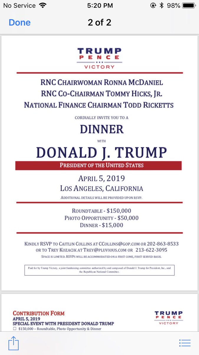 Trump is going to California next week to fundraise, per invite. $150,000 for a round table, $50,000 for a picture, $15,000 for dinner.pic.twitter.com/IyzsOCRjVm