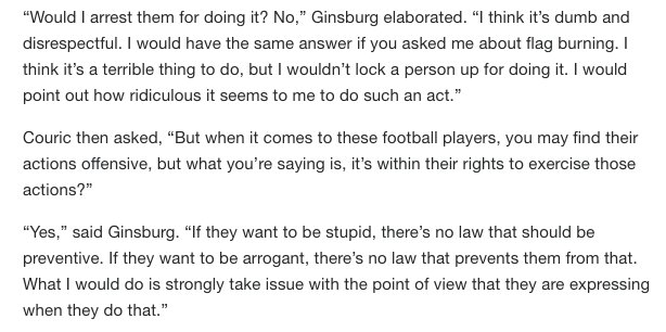 RBG says Kaepernick's protest was 'dumb' & 'stupid' I'm SO SHOCKED that someone who was BFF with Scalia would feel this way! Wait ... no ...pic.twitter.com/ifeu1rD2pj