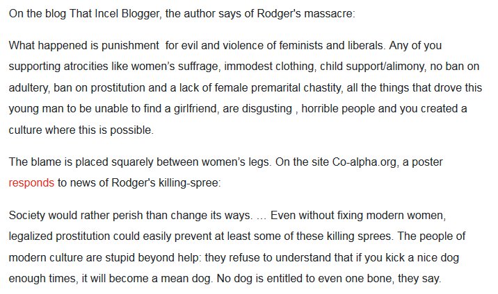 https://www.salon.com/2014/05/27/inside_the_terrifying_twisted_online_world_of_involuntary_celibates/ … goes into it in detail. https://heavy.com/news/2018/04/incel-movement-alek-minassian-elliot-rodger/ … is a worse article but the top comment shows off not just the groupthink extremely well but it's adjacency to other toxic ideologies. pic.twitter.com/lvKS214Jh9