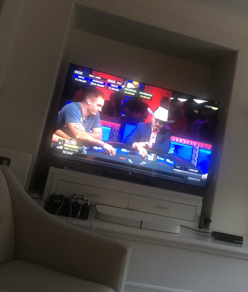 @onedrop $1,000,000 buyin tournament on ESPN2 and rooting for my friend@JustinBonomo to take down the $10,000,000 first prize and #1 on the all time poker tournament money list. Just three players left!pic.twitter.com/VUdLfojxOg