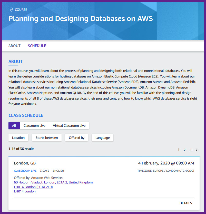 New instructor-led AWS course: Planning and Designing Databases on AWS - https://go.aws/2uq3lkR pic.twitter.com/ACoY8hqCJ1
