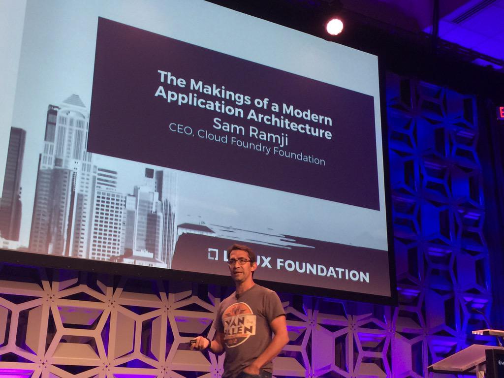 Now @sramji Sam Ramji talking innovation at @linuxfoundation Conf NA & how open competition makes markets todaypic.twitter.com/6jcVo8nWBo