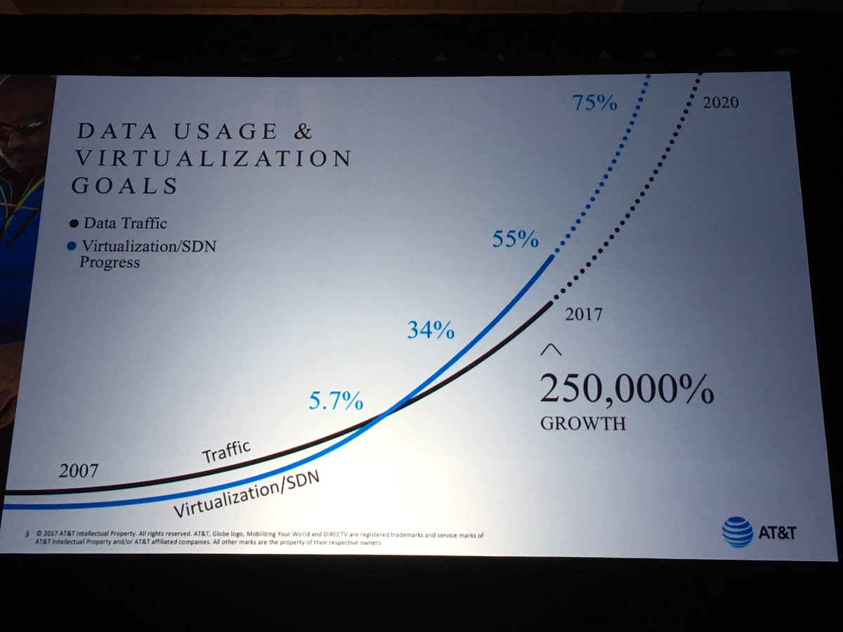 Now @ATT talking network growth, transformation in the era of #Cloud @linuxfoundation Leadership Summit "250k% growth in data use" #lfoslspic.twitter.com/9swN5tzVq6