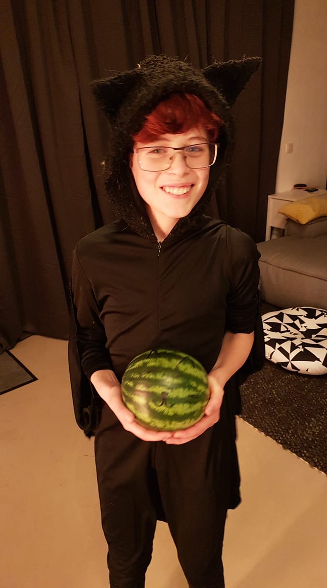 Not really sure why grandson Riley is dressed for Halloween today over in Amsterdam, or why he made a "catermelon", but I'm just gonna go with it.pic.twitter.com/Ce3v8Dcq4A