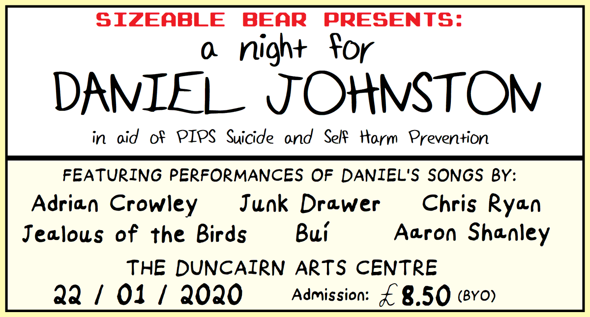 @aaronshanley,@jeliofthebirds,@hellochrisryan,@junkdrawerband and@bui433 will pay tribute to the late, great Daniel Johnston at Belfast's@theduncairn. BYO, too. http://thethinair.net/2020/01/a-night-for-daniel-johnston-the-duncairn-belfast/ …pic.twitter.com/l0ycE2YhIG