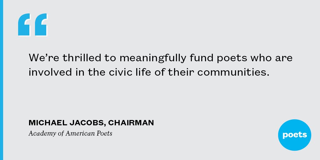 "We are thrilled that this extraordinary grant will...enable us to meaningfully fund poets who are involved in the civic life of their communities." —Michael Jacobs, Chairman