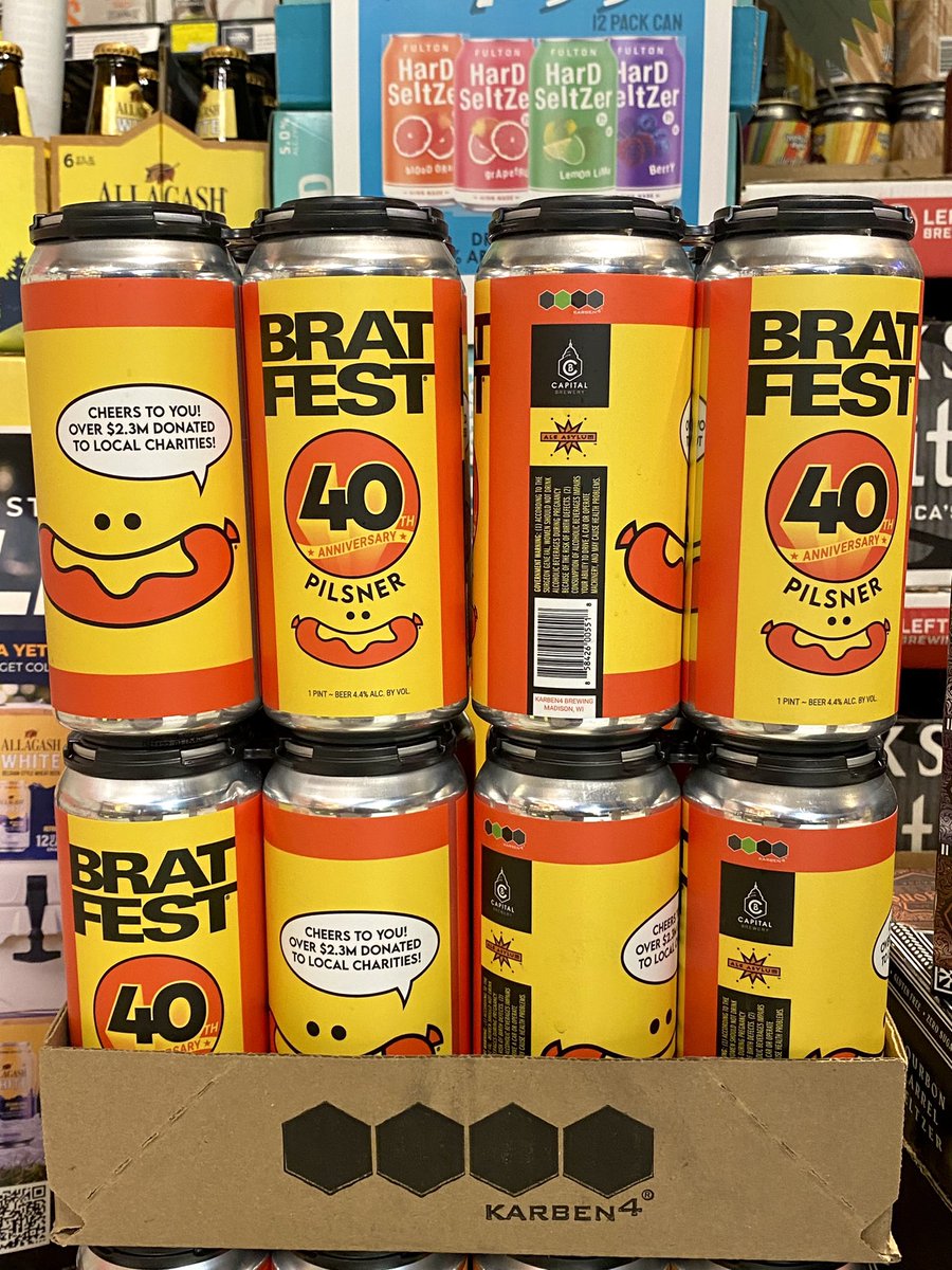 The new Bratfest 40th Anniversary Pilsner available now. A collaboration between Karben4, Capital Brewing & Ale Asylum. Get it while we got it