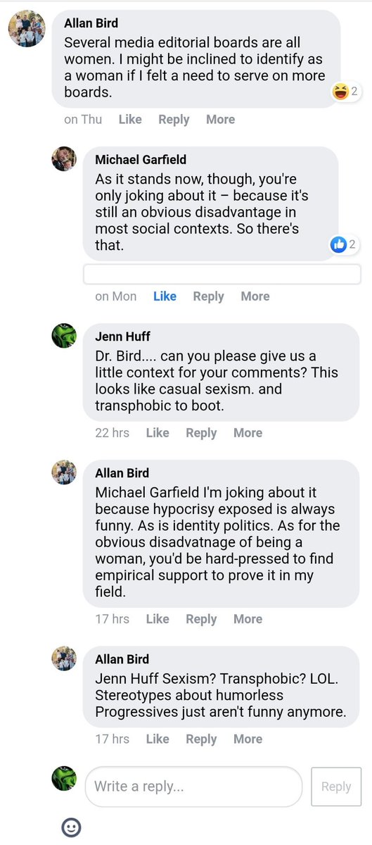 #sexisminacademia we find out that prominent business school professors Allan Bird of@pacificu@Northeastern and Ram Mudambi@RMInnovation of@foxschool@TempleUniv are comfortable with#EverydaySexism and Bird a bit of#transphobia to boot!pic.twitter.com/U2QXxB3sR4