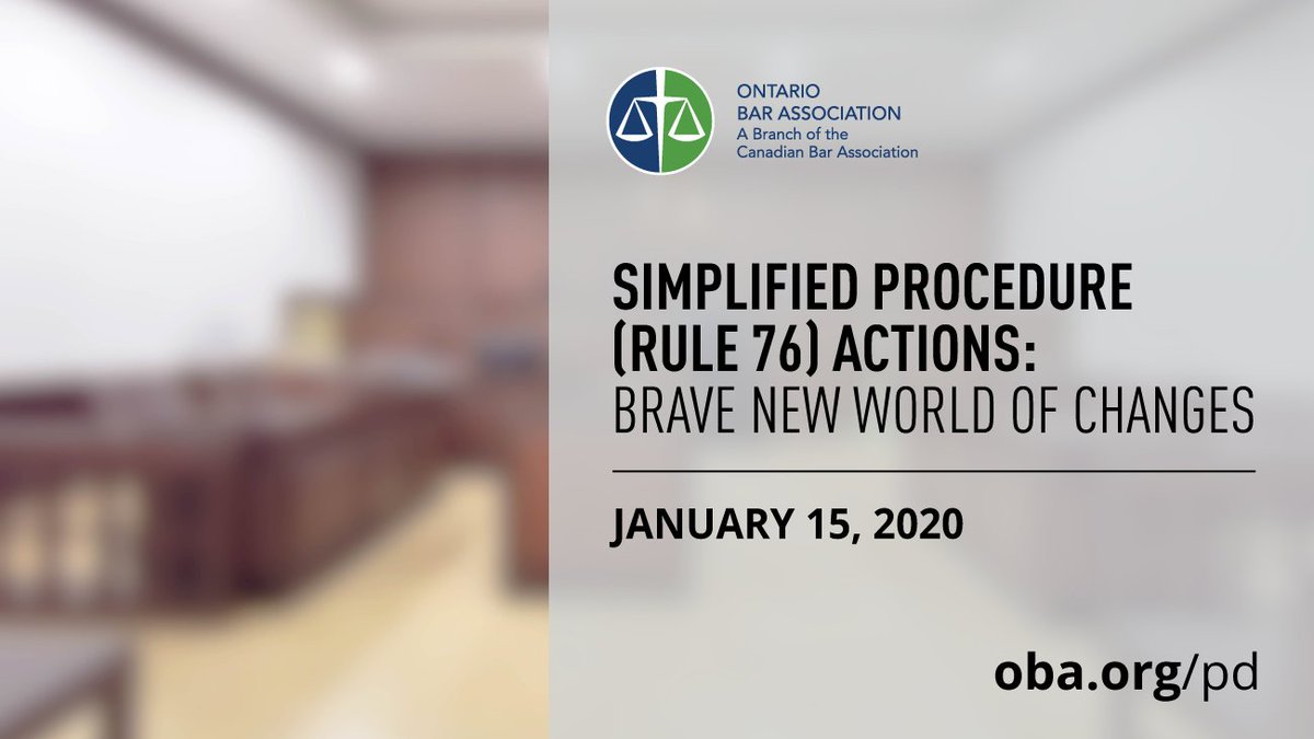 Simplified actions are now subject to significant substantive and procedural changes, so it is critical that you know how these changes will affect you and your clients going forward. Register for this evening program to stay on top of these amendments. https://cbapd.org/details_en.aspx?id=ON_ON20OBA06T …pic.twitter.com/zvnG32kB5a