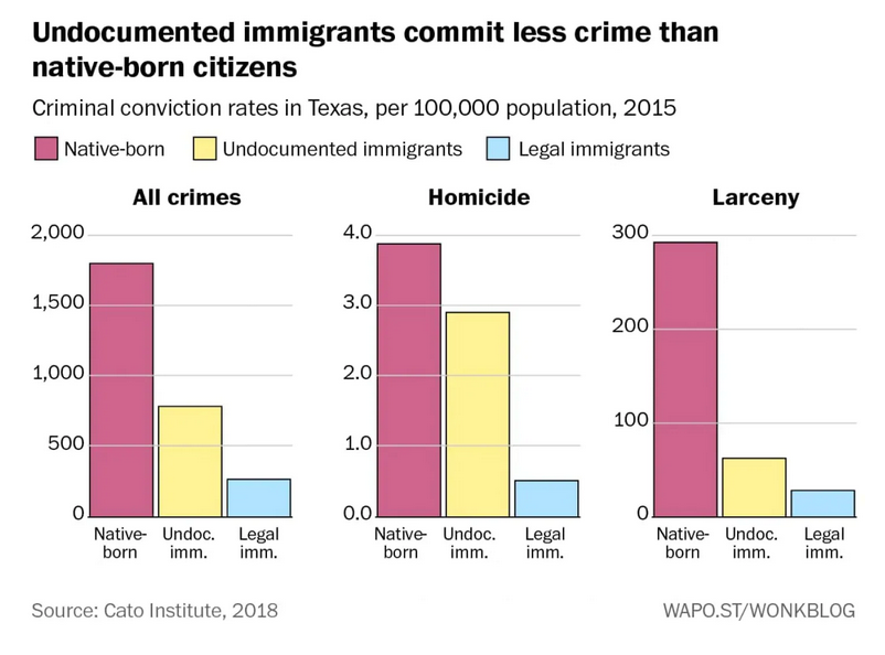 https://www.washingtonpost.com/news/wonk/wp/2018/06/19/two-charts-demolish-the-notion-that-immigrants-here-illegally-commit-more-crime/ …pic.twitter.com/BK2Rml41Oh