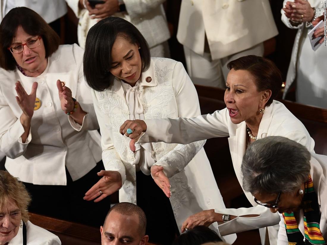 Many female Democratic lawmakers arrived at the State of the Union dressed in white to commemorate the 100th anniversary of women first having the right to vote.