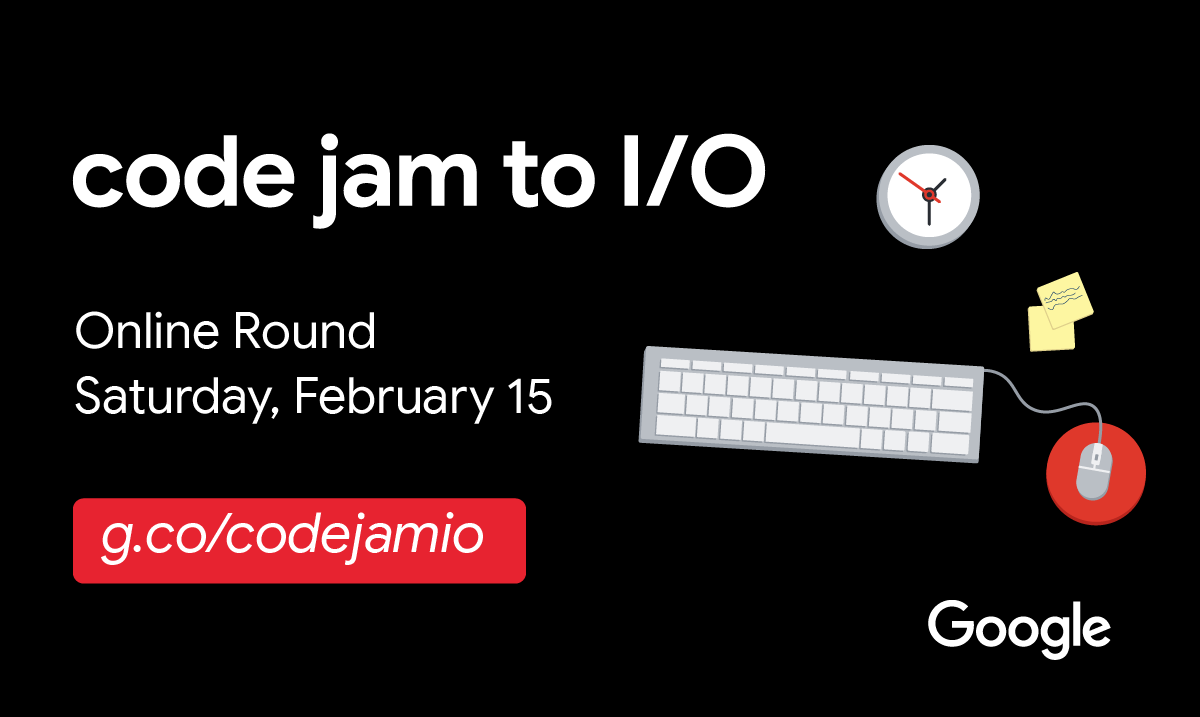 Want to win a ticket to Google I/O? Register for Code Jam to I/O, Google's online coding competition specifically for women, happening on Feb 15 → https://buff.ly/2RCE2St