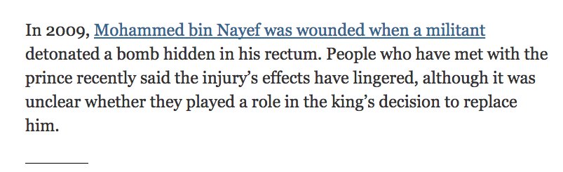 This was the last paragraph from this piece: Saudi King Rewrites Succession, Replacing Heir With Son, 31https://nyti.ms/2sOB30K