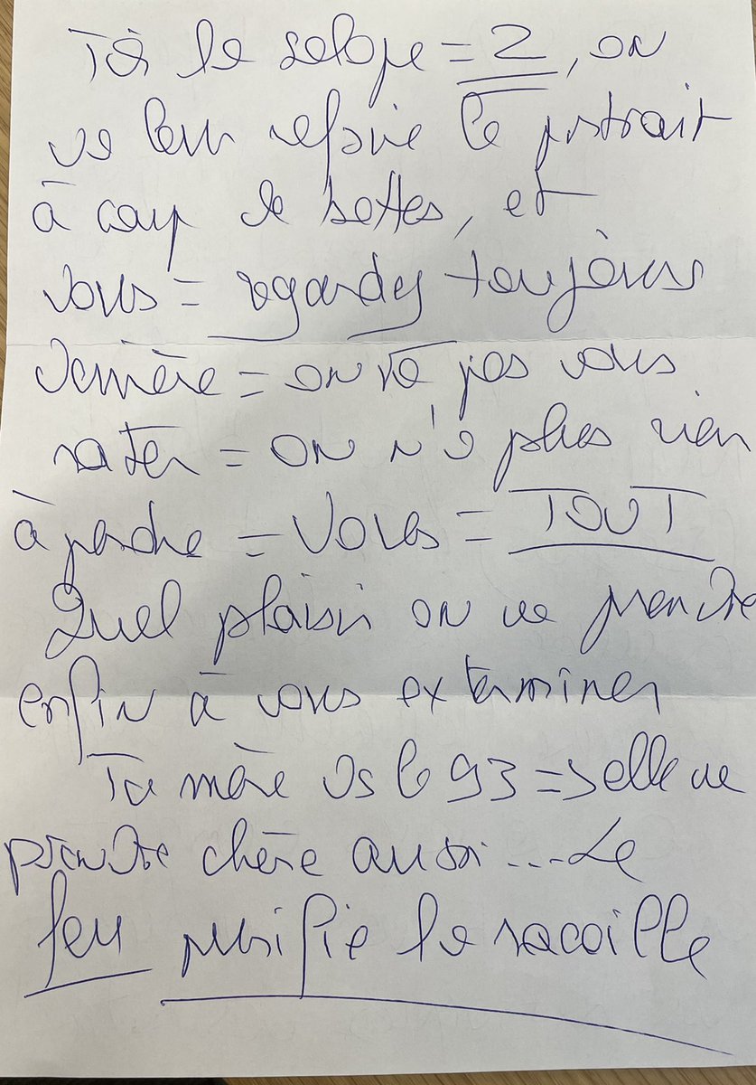 «Montre moi ta fille (..) je vais lui cracher dans la bouche, elle va me dire Wallah, plus fort. Je vais baiser ta fille, après y'aura ta femme»