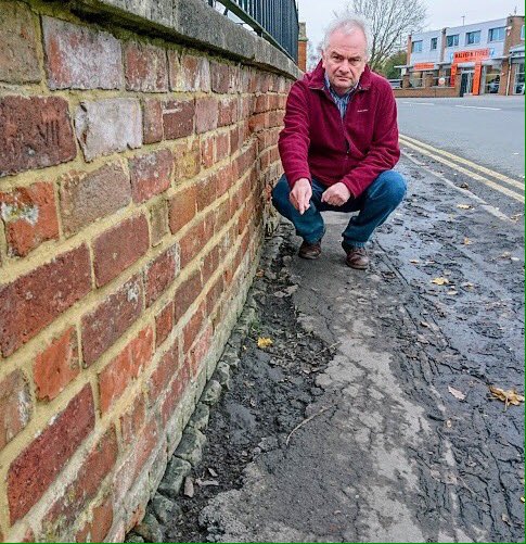 Highway engineers at work repairing footway by St Oswald's Priory. It took some persistence, but I'm pleased to see repairs being done.pic.twitter.com/xSdQscM1yh