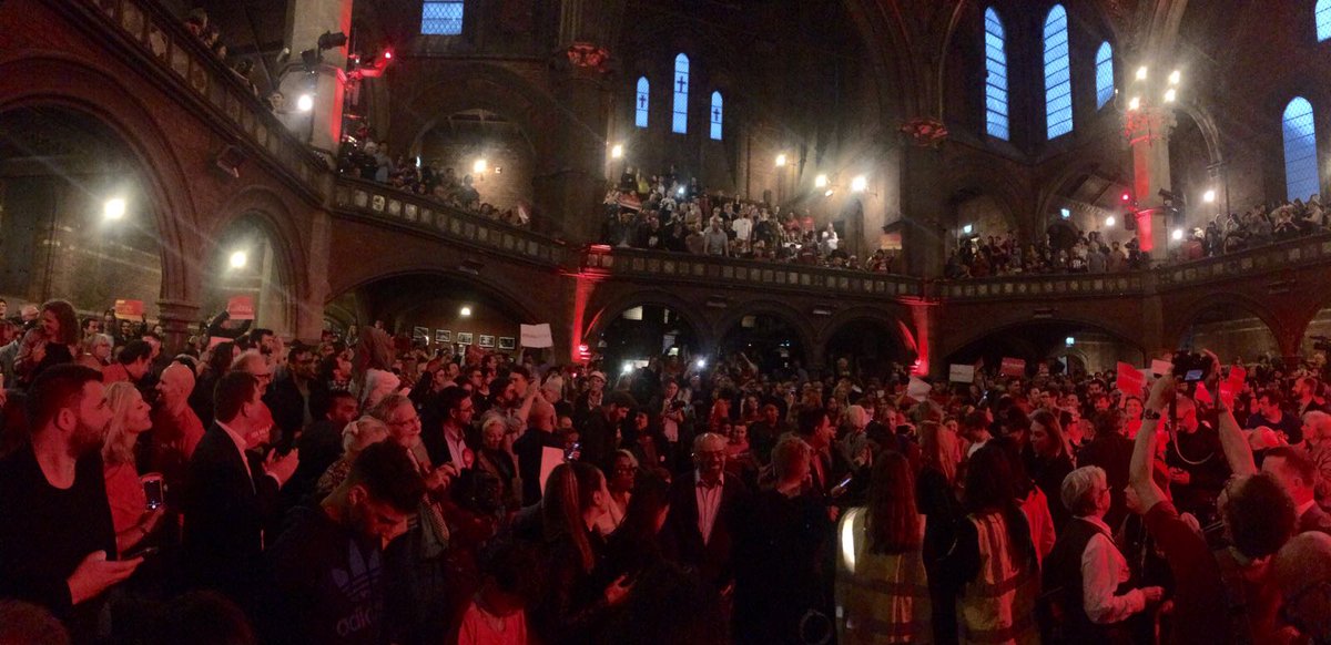 Outside the Corbyn rally in Islington the atmosphere is electric & joyous Solidarity & pride.pic.twitter.com/UP17RlqLd4