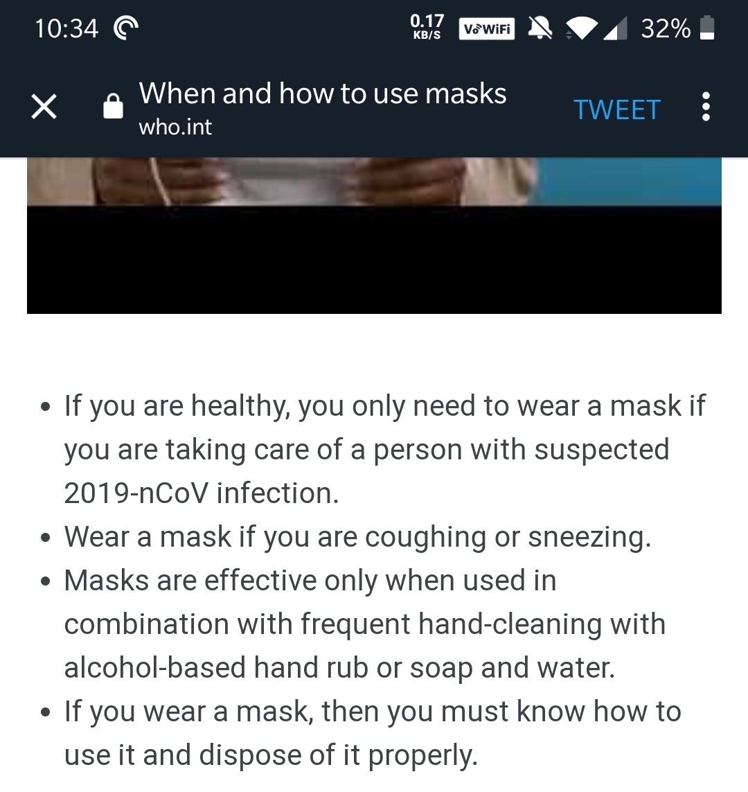 @WHO official page says: https://www.who.int/emergencies/diseases/novel-coronavirus-2019/advice-for-public/when-and-how-to-use-masks …Thanks. Twitter will use this to make your timeline better. UndoUndo