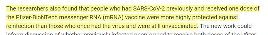 Exhibit A: How the media report the findings of a recent study by Israeli researchers: claiming a significant benefit of vaccination was found for people with natural immunity. Exhibit B: What the study actually found: no such benefit.pic.twitter.com/Q18rjWqMAn