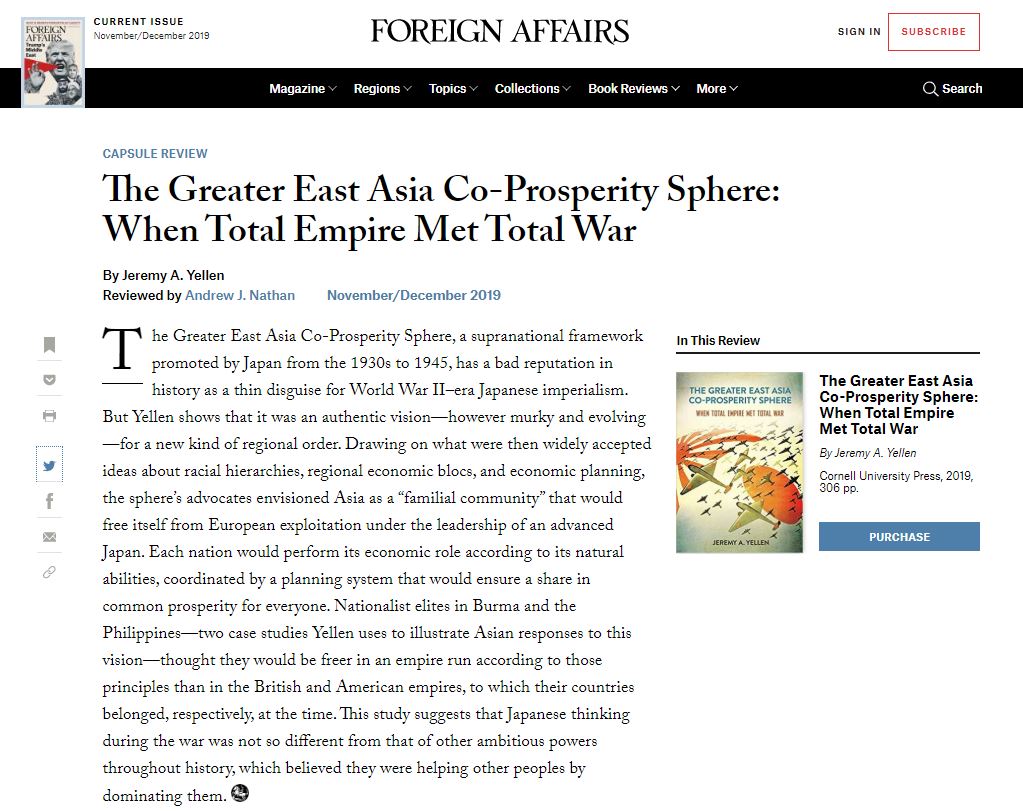 I am excited to see that Foreign Affairs (