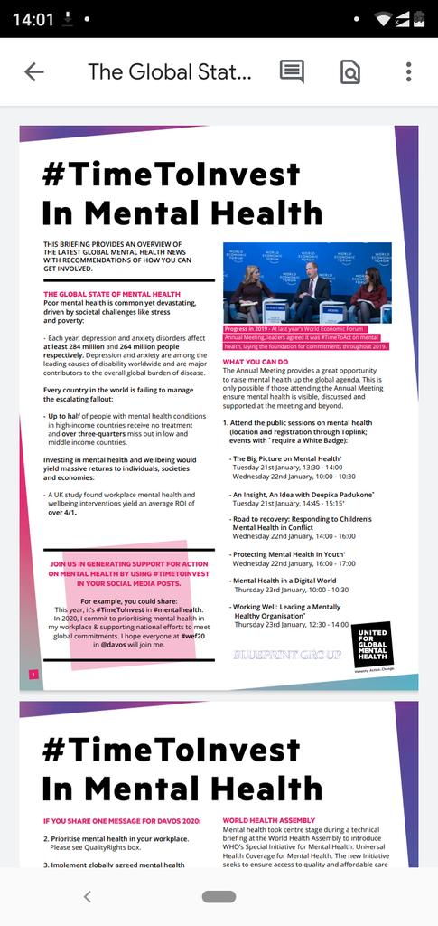 #TimeToInvest in#mentalhealth#WEF2020@wef@Davos@UnitedGMHpic.twitter.com/JuDnYRAcdS