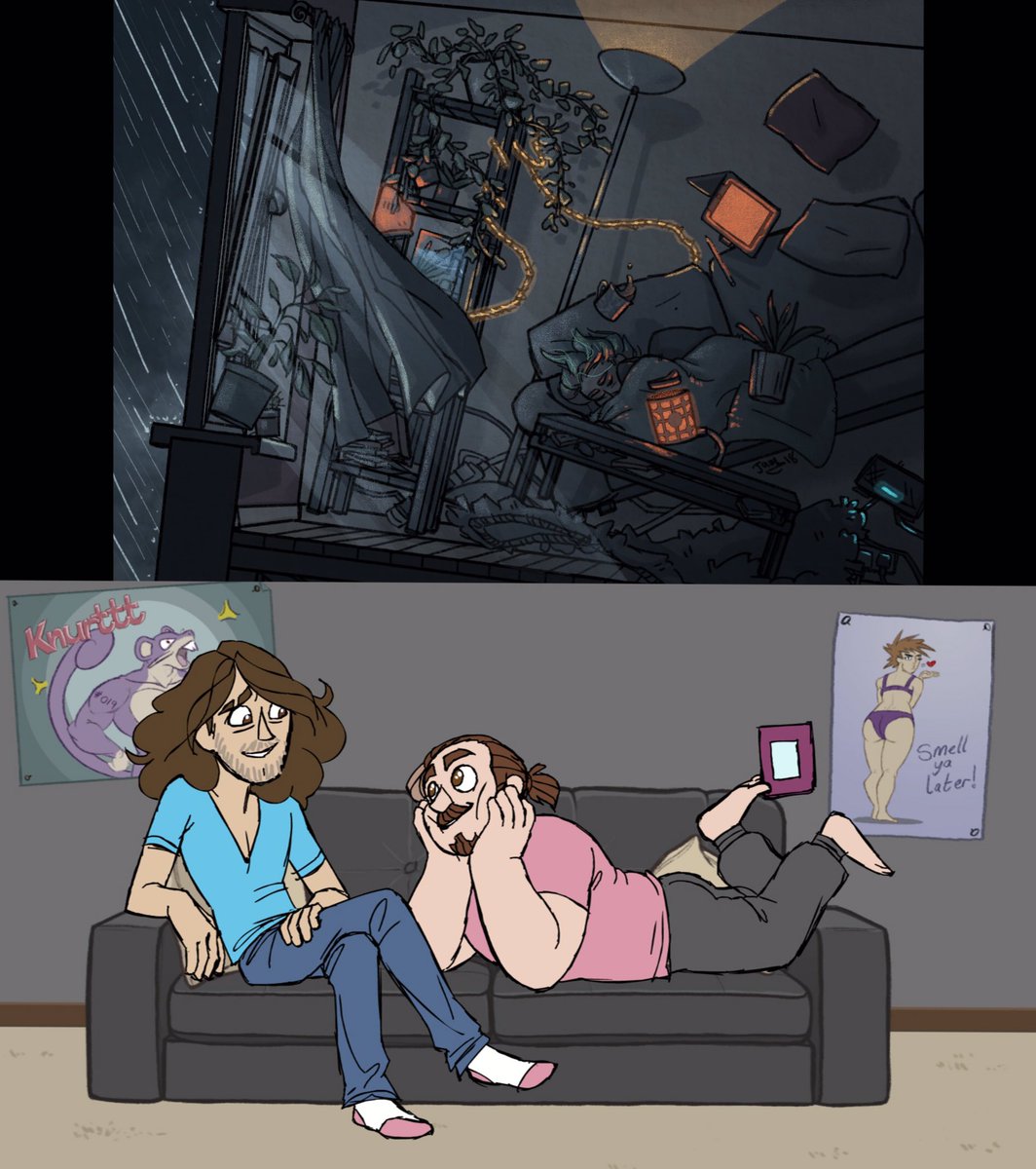 Background (including posters) on the @GameGrumps animated frame by the dashing @TerribleBeastie !