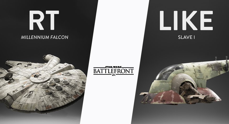 Which hero vehicle are you most anxious to fly? RT for the Millenium Falcon LIKE for Slave I pic.twitter.com/mOtLHa9Ahf