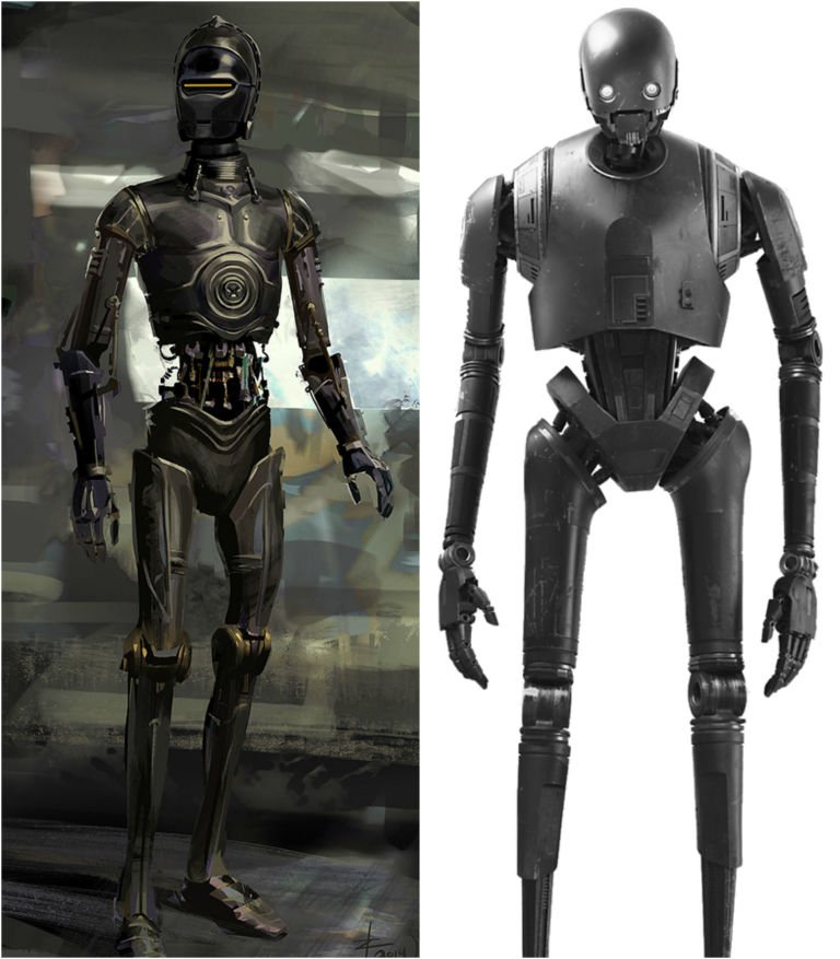 In early concept art K-2SO looks more like C-3PO. His final design was inspired by sketches from legendary artist Ralph McQuarrie #RogueOnepic.twitter.com/6ICxzMYkLh