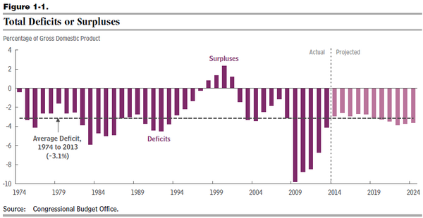 The budget deficit next year is expected to be back below its 40-year average, says @USCBO.