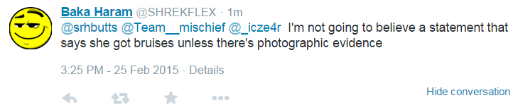 .@iboudreau @srhbutts Lot of #GamerGate ppl take the default position that when women report abuse or harassment, they're probably lying