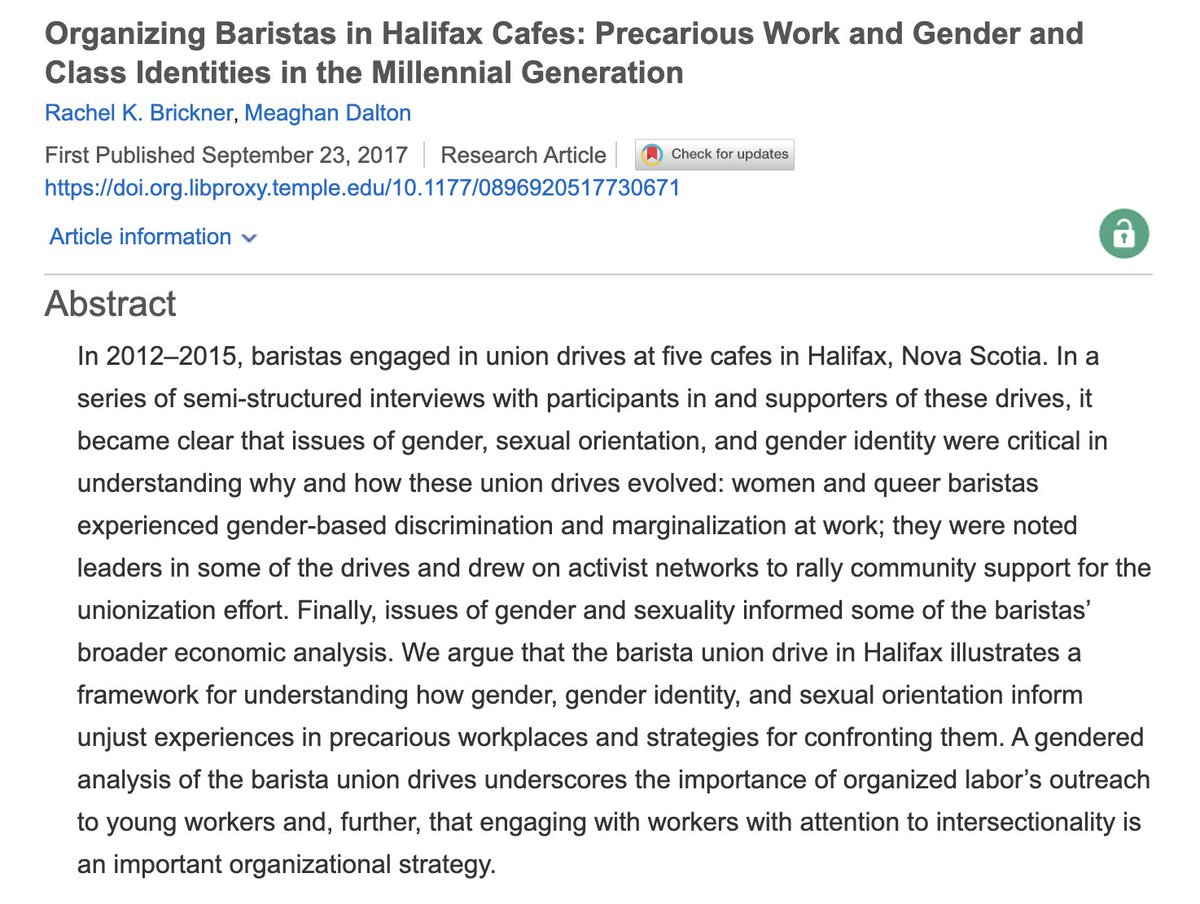 [cw food] "...why and how these union drives evolved: women and queer baristas experienced...marginalization at work; they were noted leaders in some of the drives...issues of gender and sexuality informed some of the baristas’ broader economic analysis..." NICEpic.twitter.com/niLCR4GXJ6