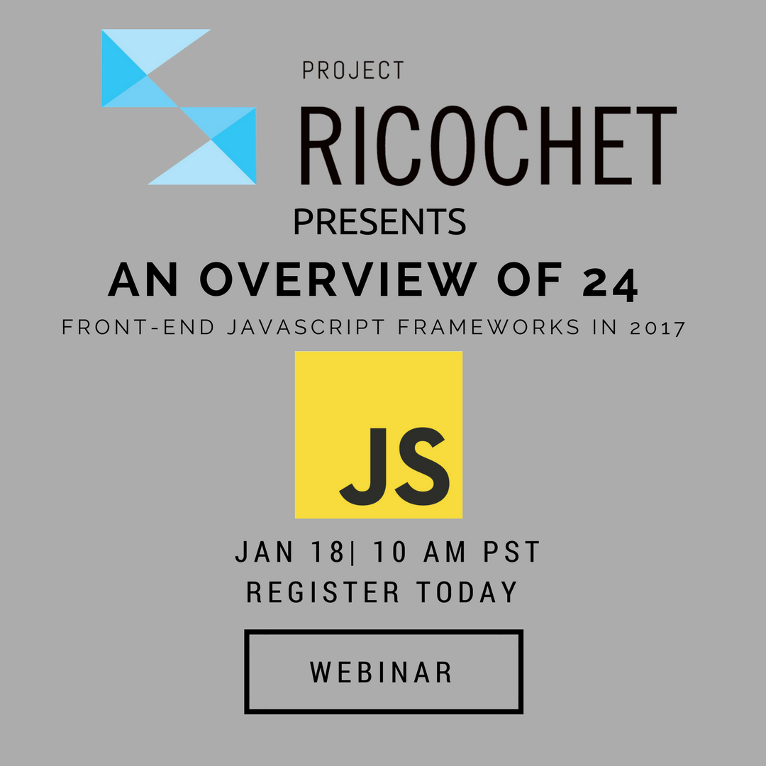 *Register Today* [WEBINAR] AN OVERVIEW OF 24 FRONT-END JAVASCRIPT FRAMEWORKS IN 2017 http://lp.projectricochet.com/an-overview-of-the-javascript-landscape/ …pic.twitter.com/IEgGbS310p