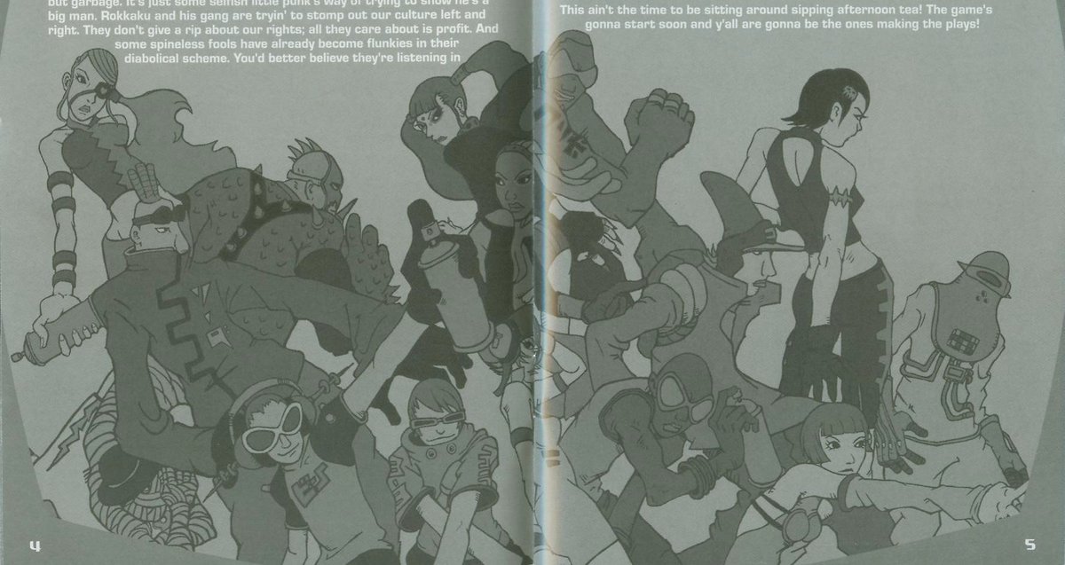 Jet Set Radio community! Full size and colored JSRF promo material like this from the manual is on Sega's servers somewhere and we ain't seeing it! Can we at least ask Ryuta Ueda's artwork not to go to waste?pic.twitter.com/ejPQ1p6Xkx