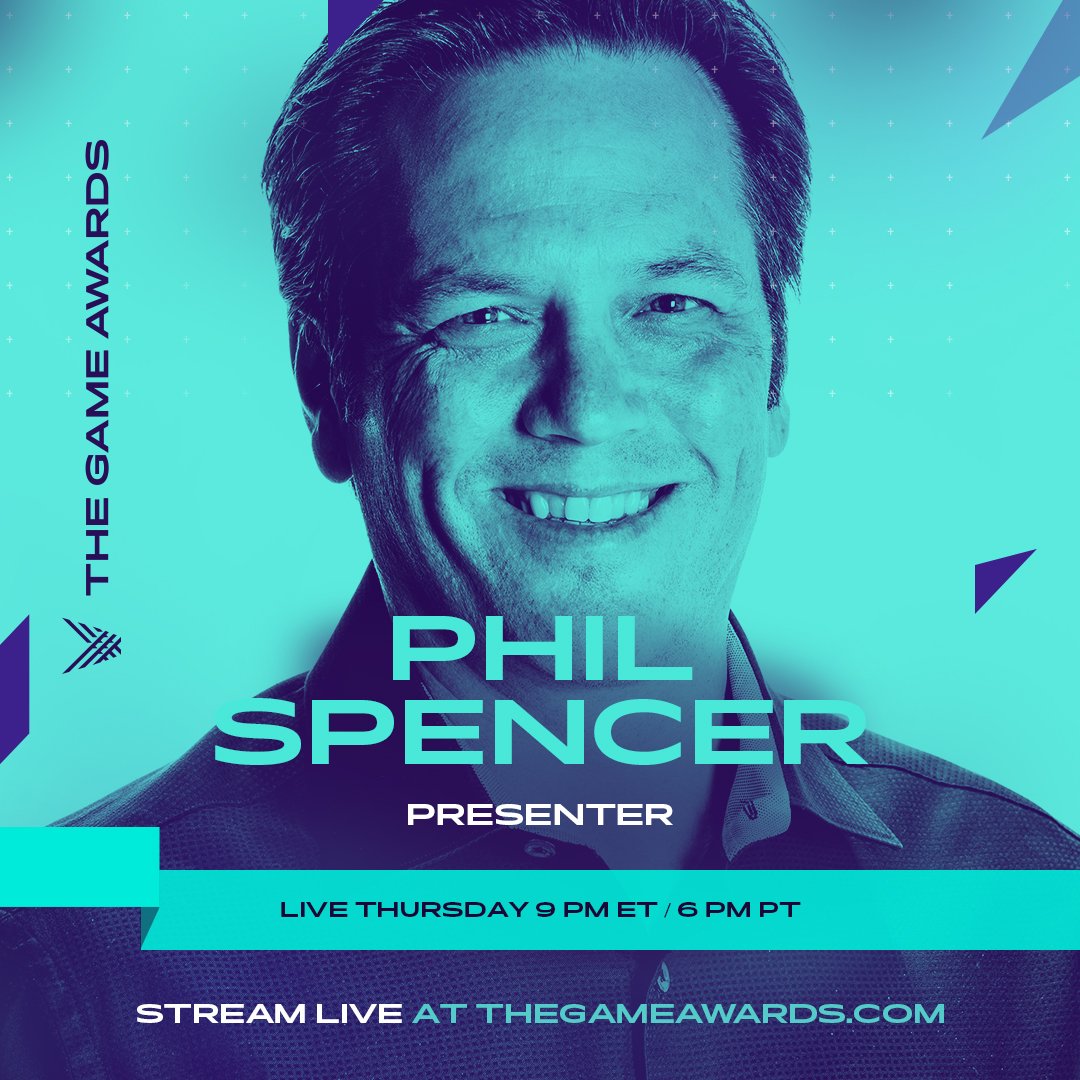 Tomorrow night #TheGameAwards is happy to welcome Phil Spencer (@xboxp3) to the stage for video game's biggest night! Don't miss a show filled with awards, news, and a celebration of gaming at 9 PM ET / 6 PM PT live everywhere. pic.twitter.com/kMq9KHUEHu