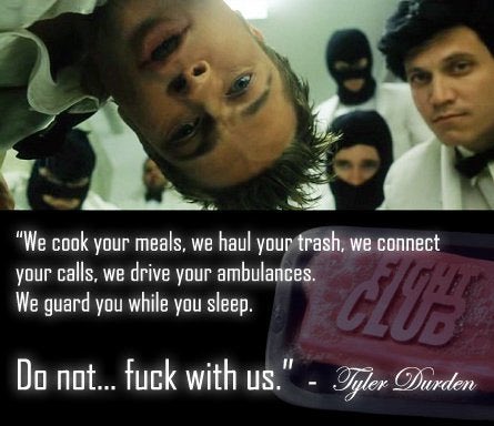 Foreal tho, this mash up of fight club and JSR is singing to the gooey core of my anti-establishment soul.
