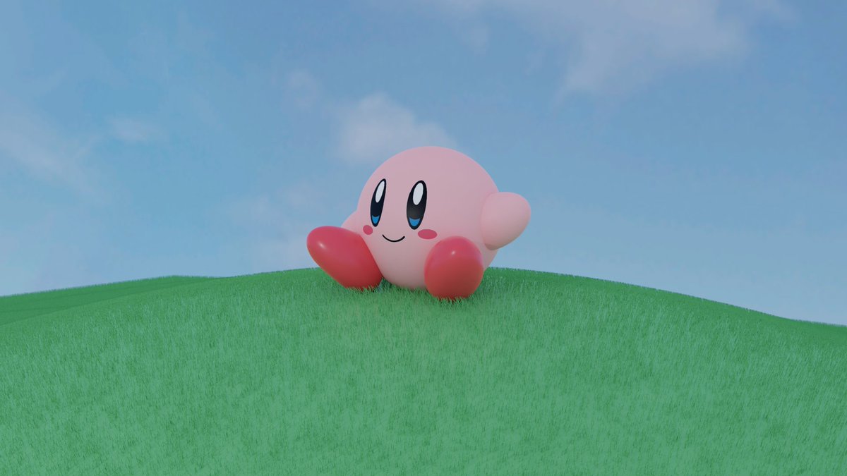 This is the first time I've ever made anything completely from scratch in Cycles, but I think it turned out okay. Everything from Kirby to the environment was made from scratch except for his face, which is a plane that I shrinkwrapped onto the sphere. Bruh Kirby's just vibinpic.twitter.com/a7aRZZnOkK